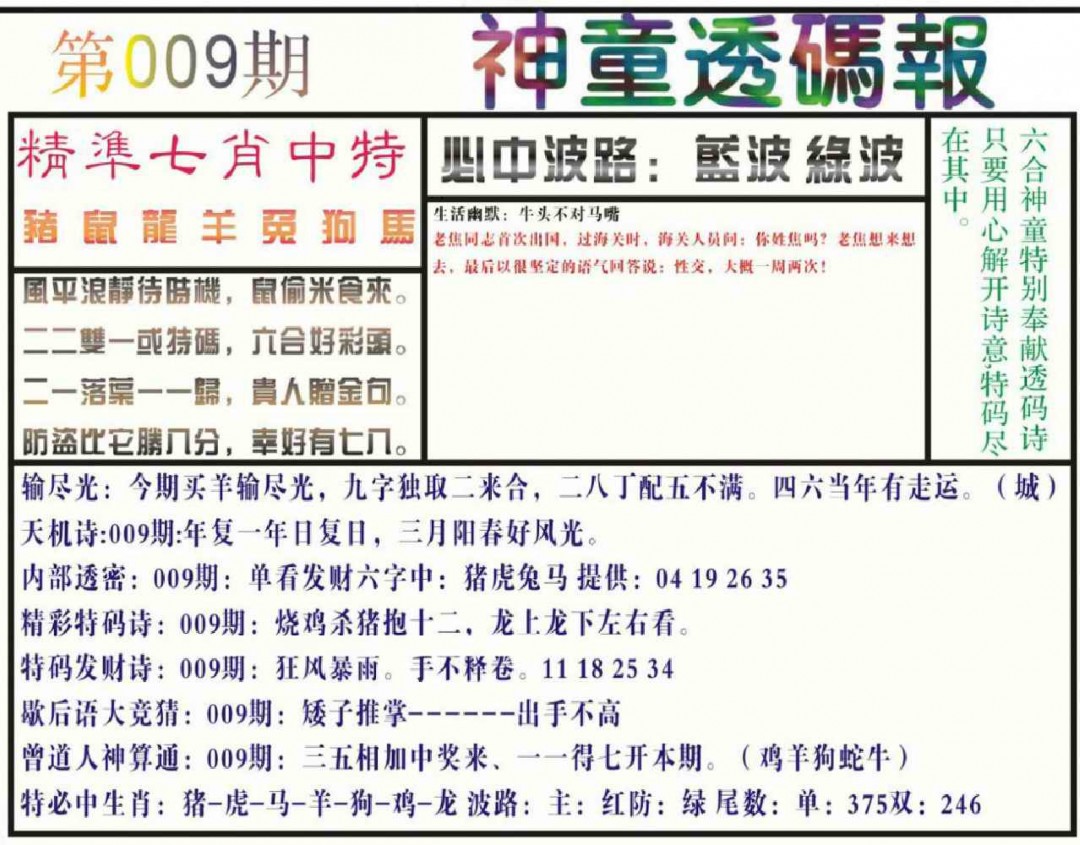 009期神童透码报(正版)[图]