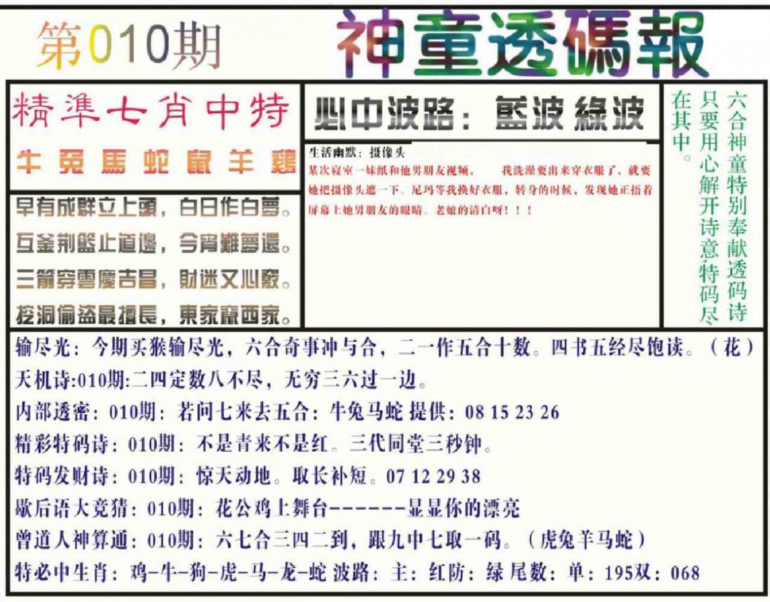 010期神童透码报(正版)[图]