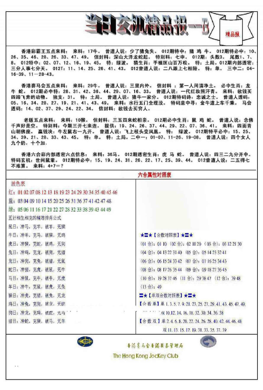 012期当日玄机精品报B[图]
