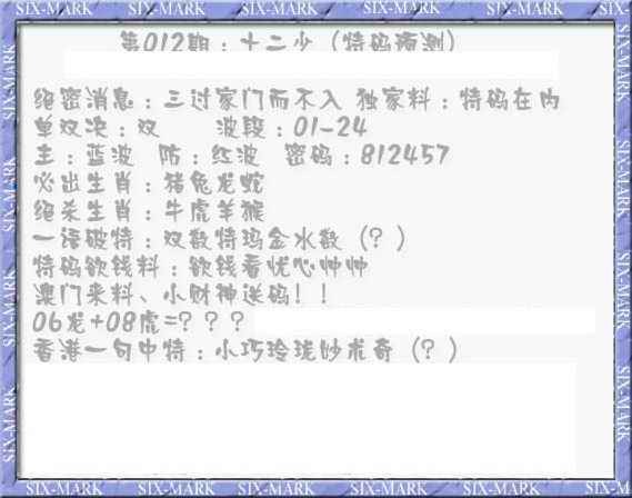 012期十二少(特码预测)[图]