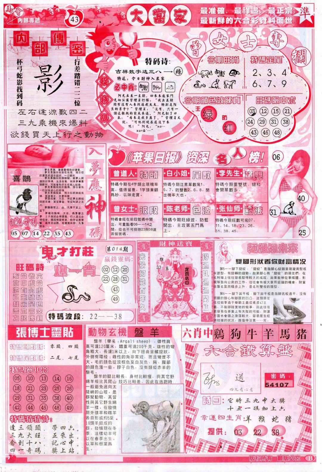 014期彩卷后庄B(保证香港版)[图]