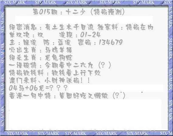015期十二少(特码预测)[图]