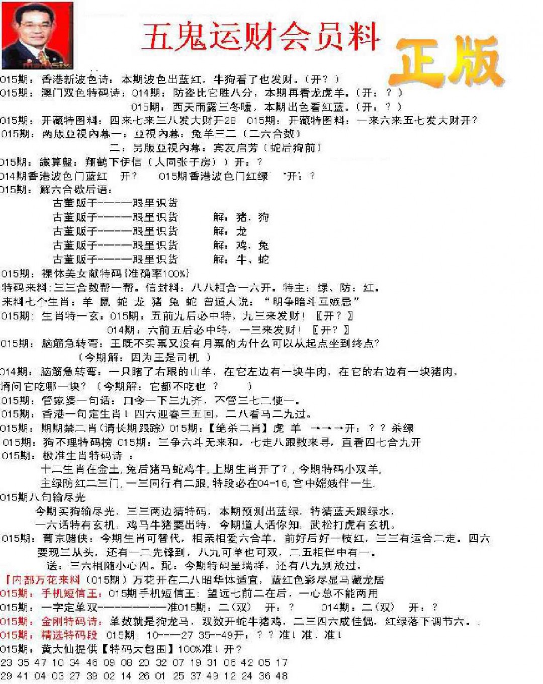 015期正版五鬼运财会员料[图]