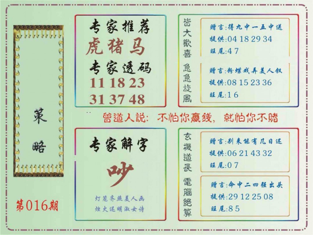 016期马经策略[图]