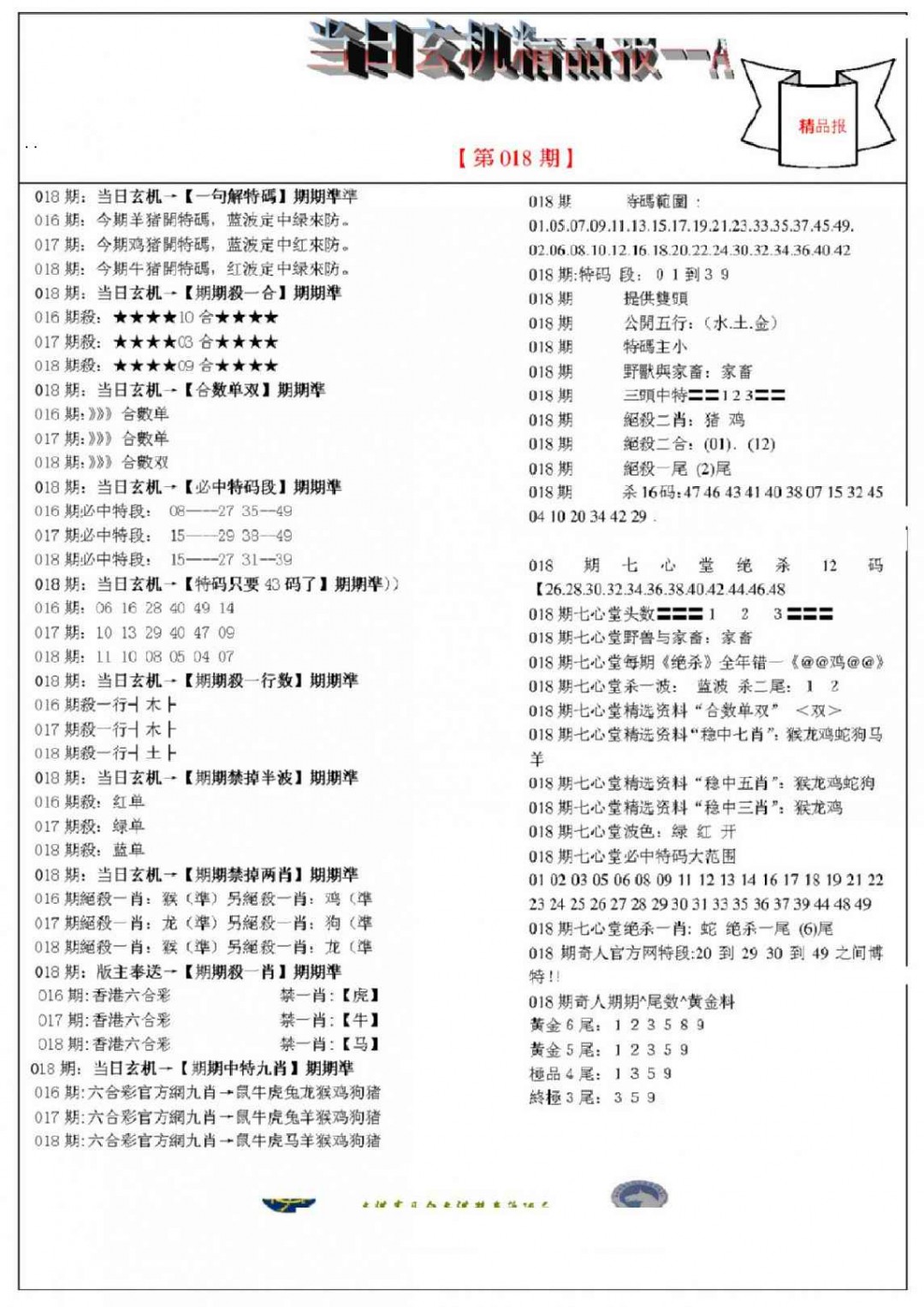 018期当日玄机精品报A[图]