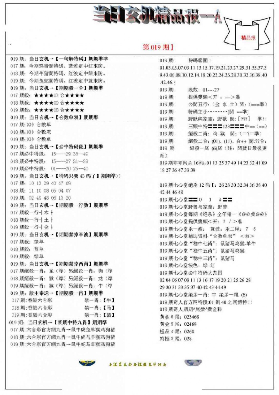 019期当日玄机精品报A[图]