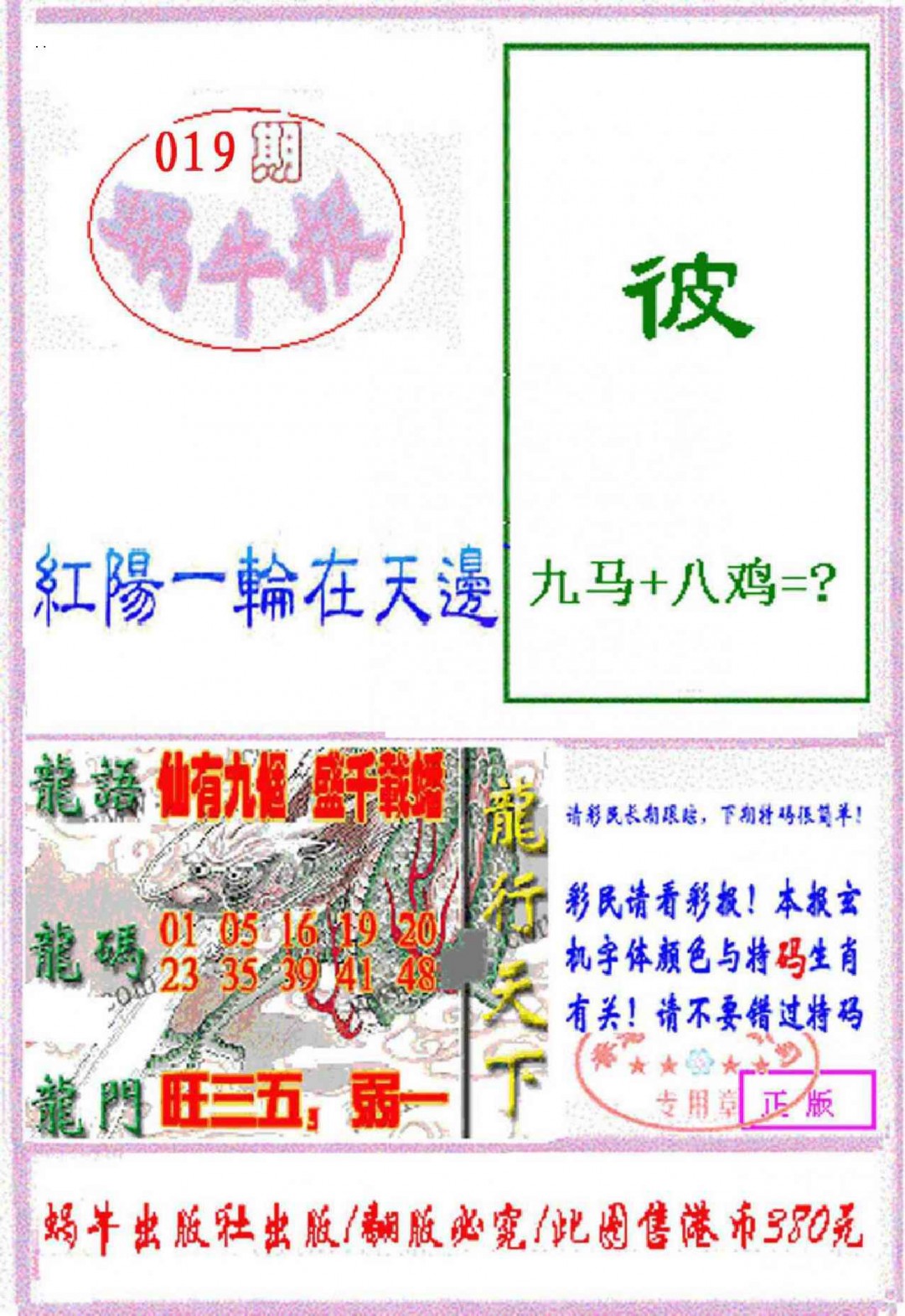 上一篇:019期九龙特新刊[图]