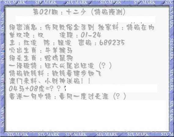 021期十二少(特码预测)[图]