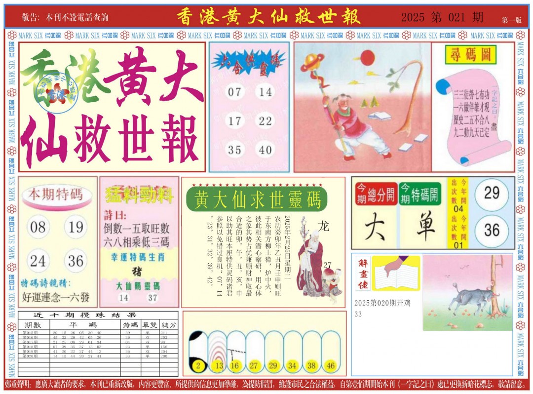 021期新黄大仙救世A[图]