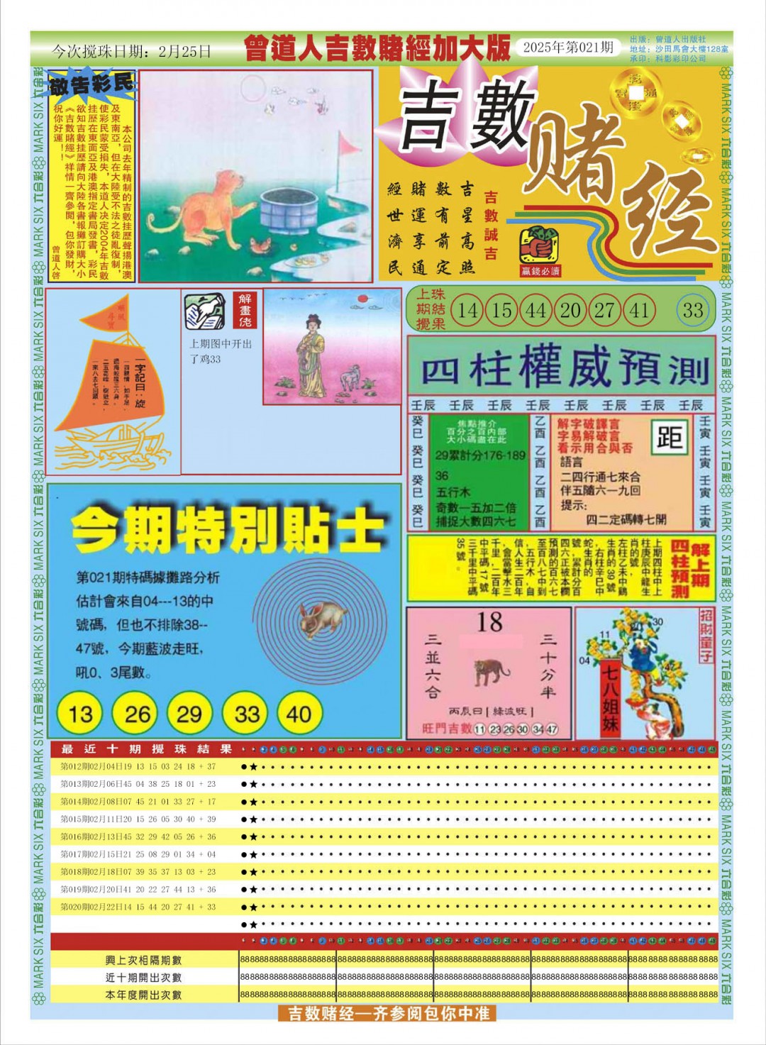 021期曾道人吉数赌经A加大版[图]