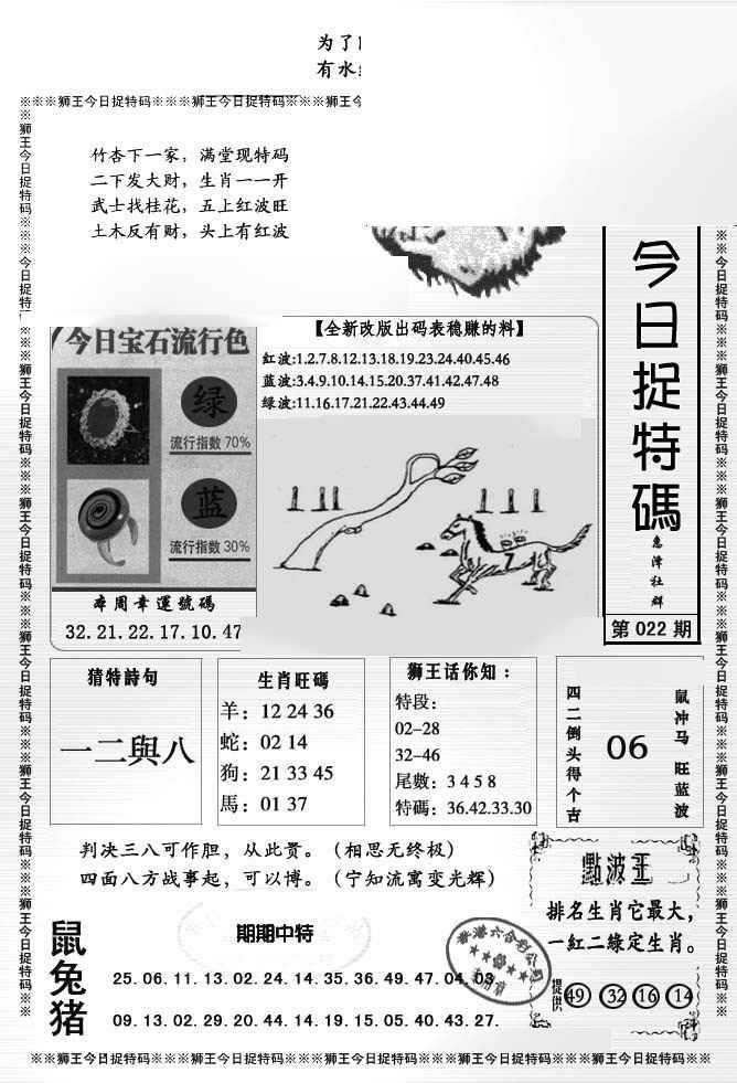 022期狮王今日抓特码[图]