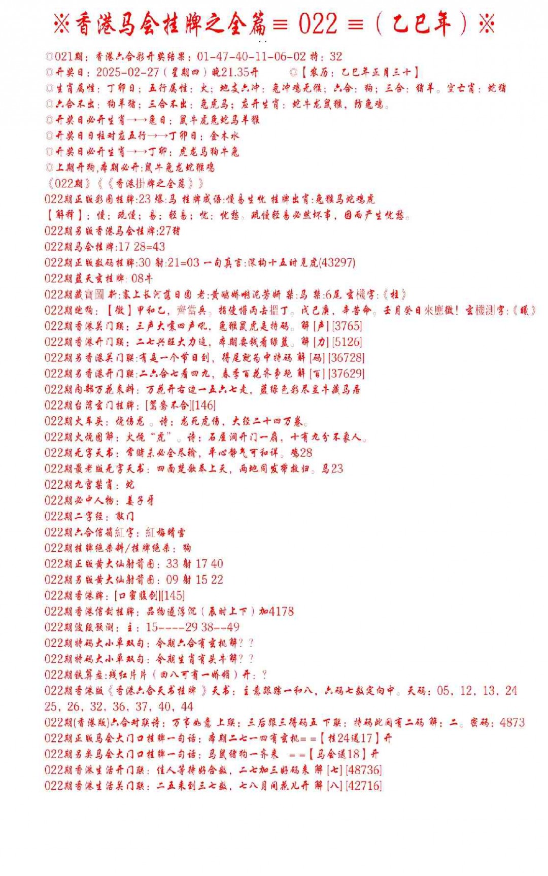 022期手写马会挂牌[图]