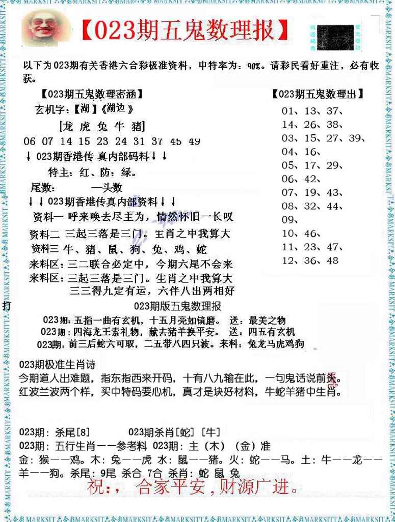 023期五鬼数理报[图]