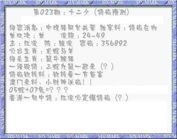023期十二少(特码预测)[图]