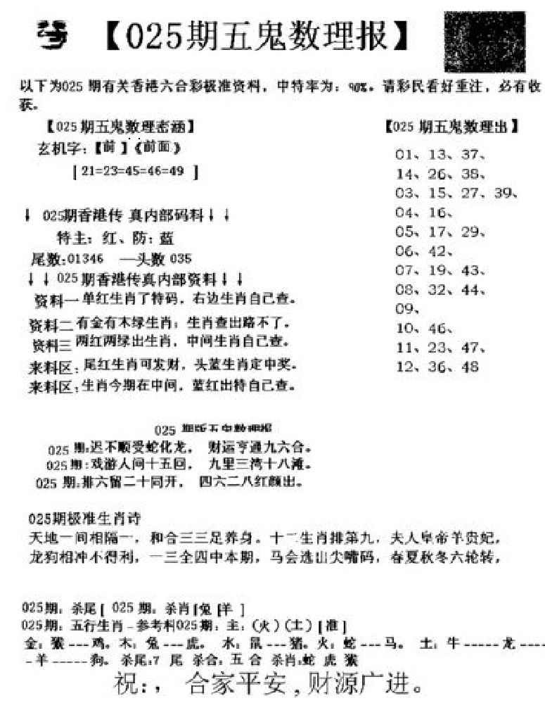 025期五鬼数理报[图]