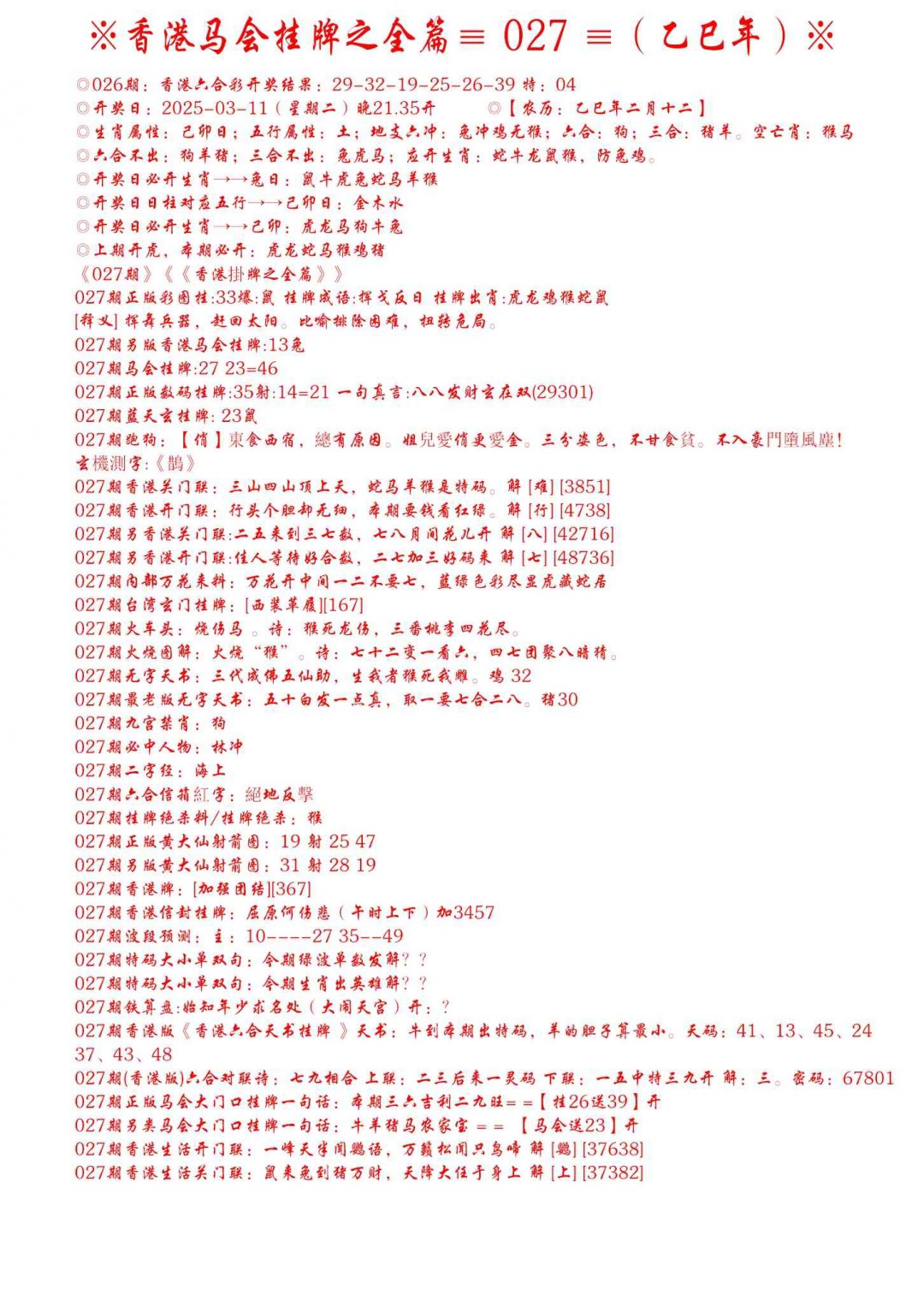 027期手写马会挂牌[图]