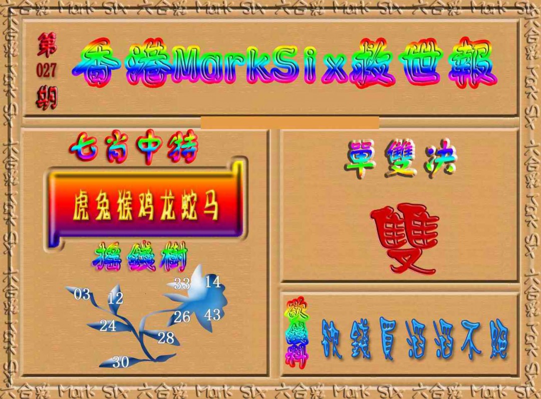 027期香港MarkSix救世报[图]