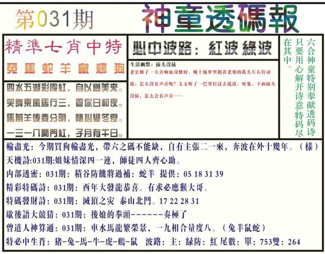 031期神童透码报(正版)[图]