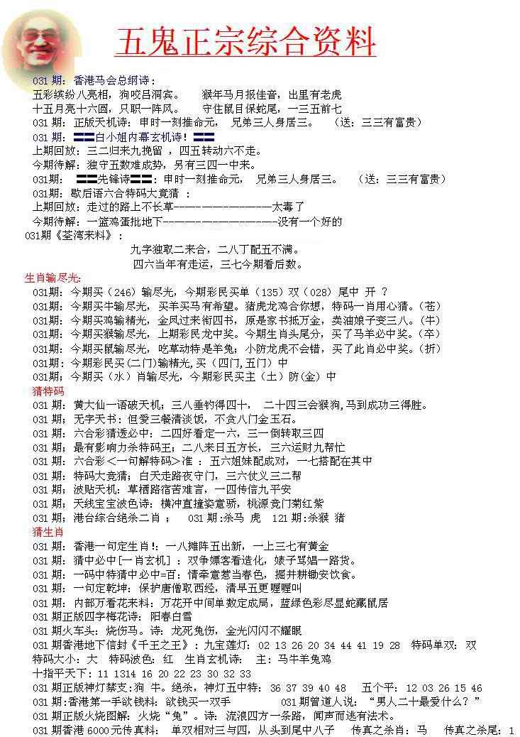 031期五鬼正宗会员综合资料A[图]