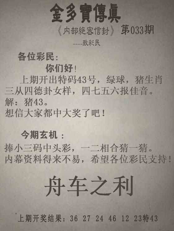 033期金多宝传真[图]