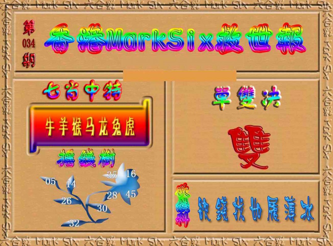 034期香港MarkSix救世报[图]