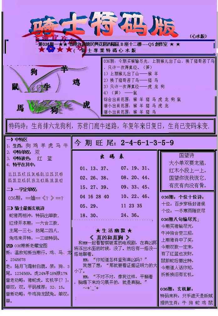 036期另骑士特码版[图]