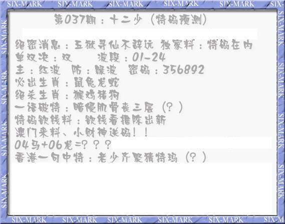 037期十二少(特码预测)[图]