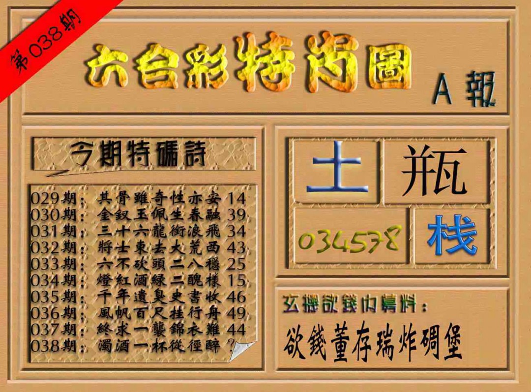 038期六合彩特肖图(A报)[图]