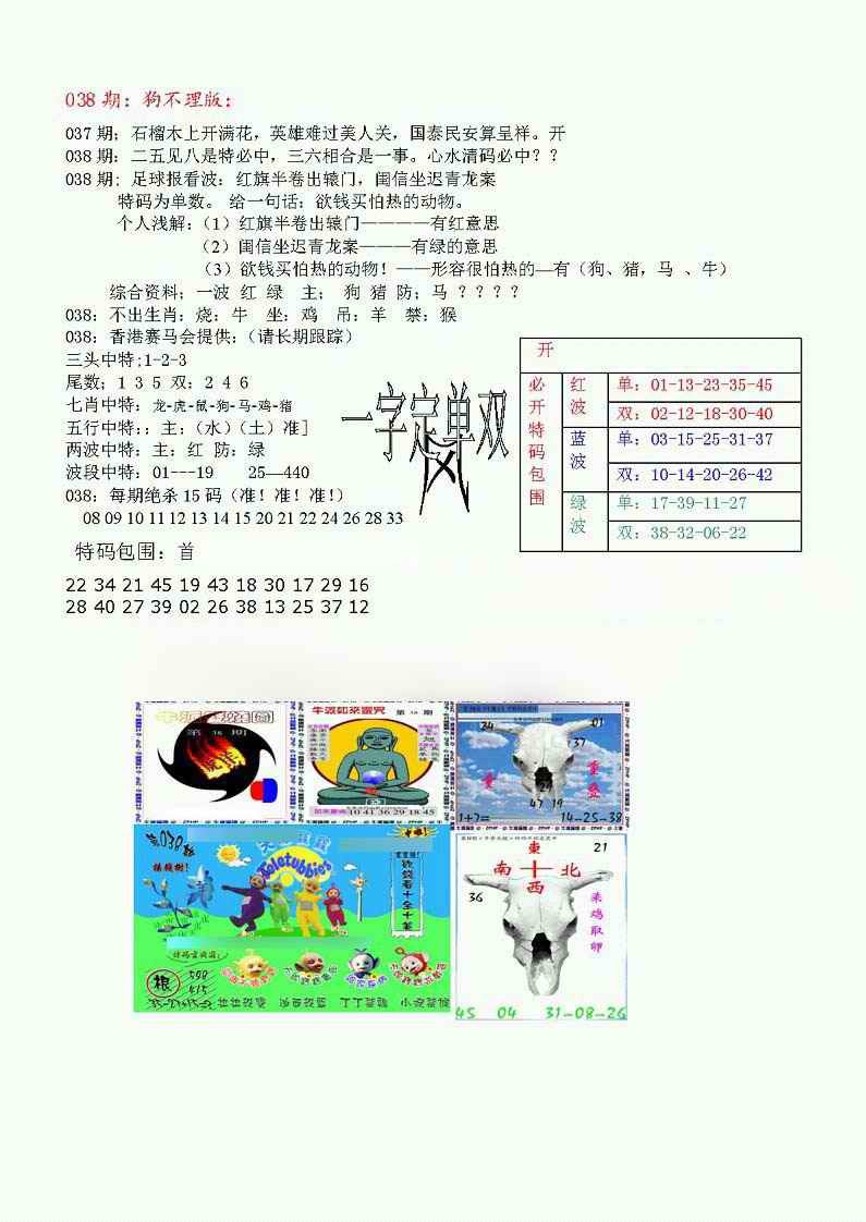 038期狗不理特码报[图]
