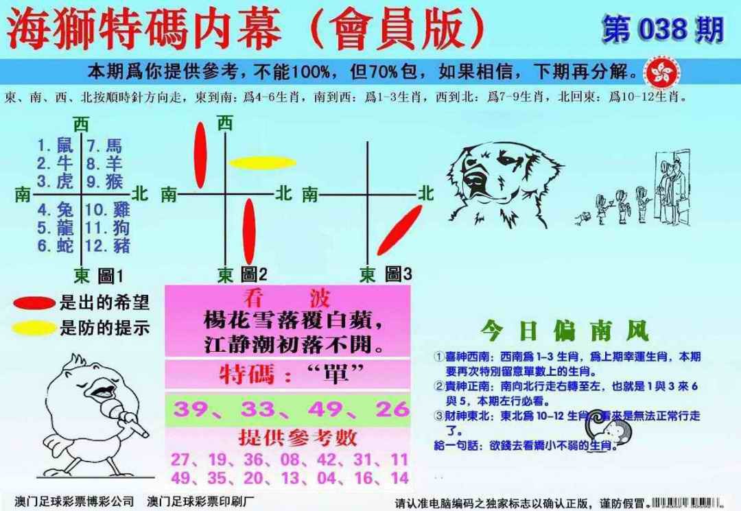 038期另版海狮特码内幕报[图]