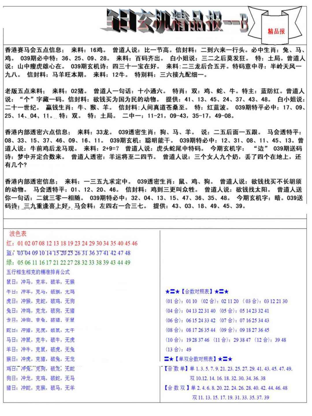 039期当日玄机精品报B[图]