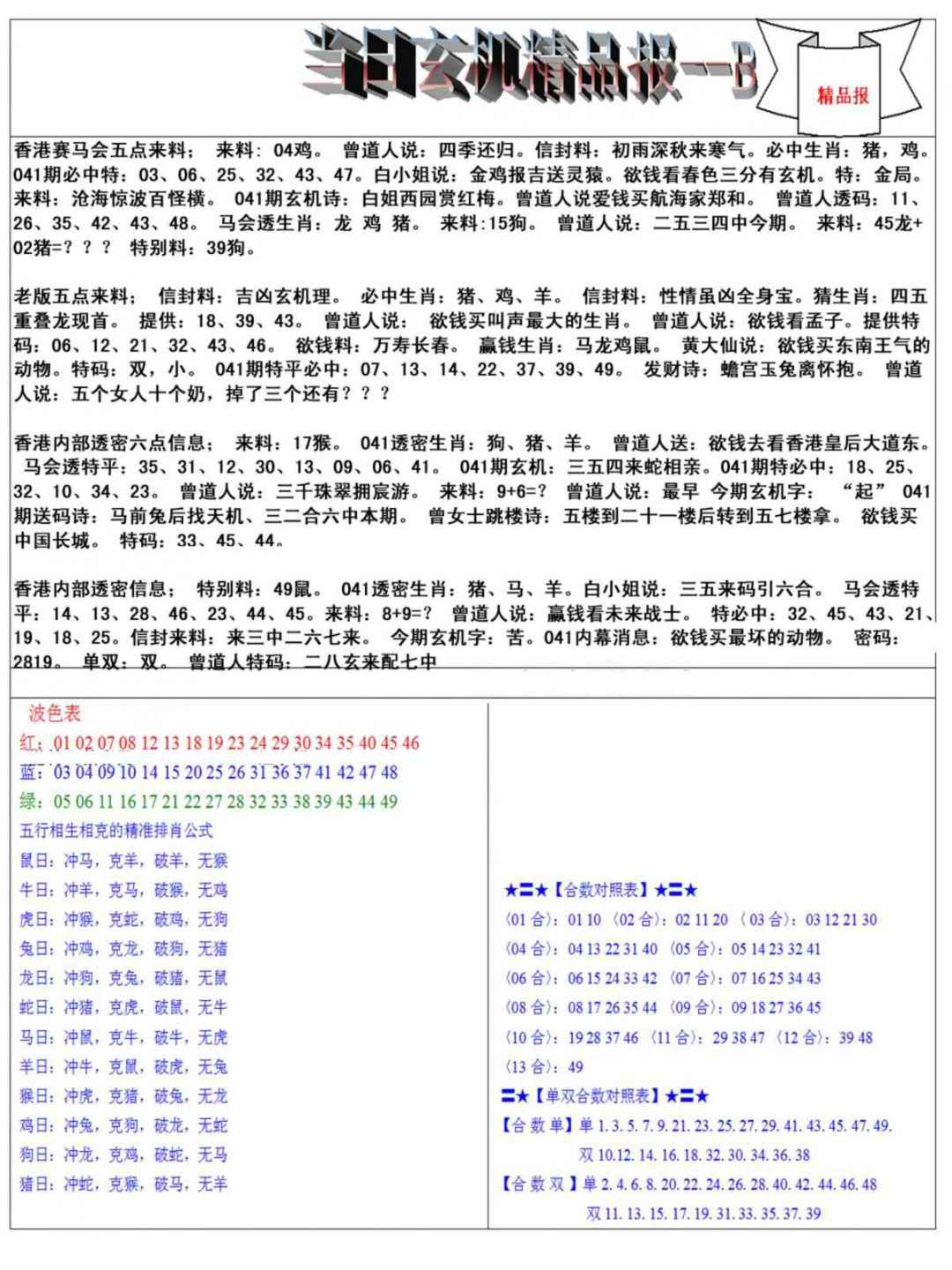 041期当日玄机精品报B[图]