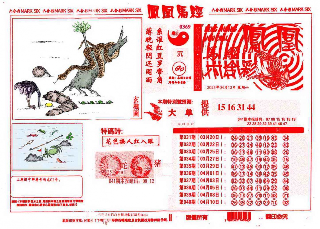 041期凤凰马经(信封)[图]