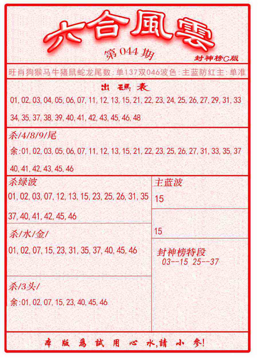 044期六合风云B面[图]