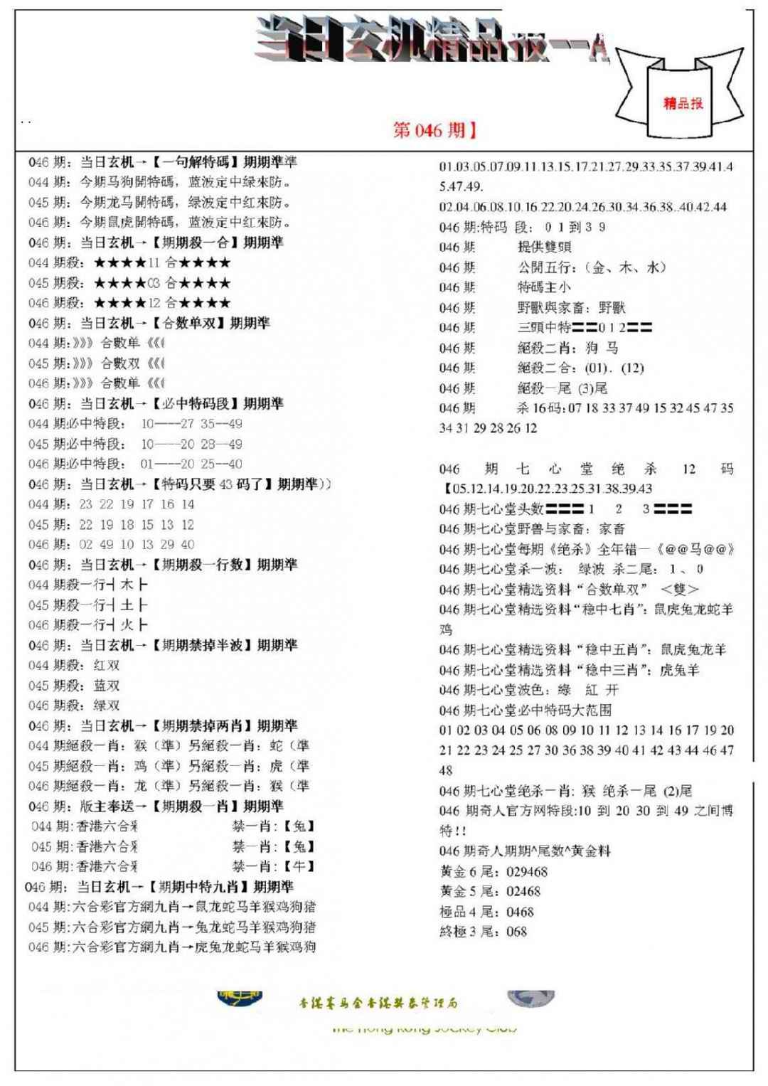 046期当日玄机精品报A[图]