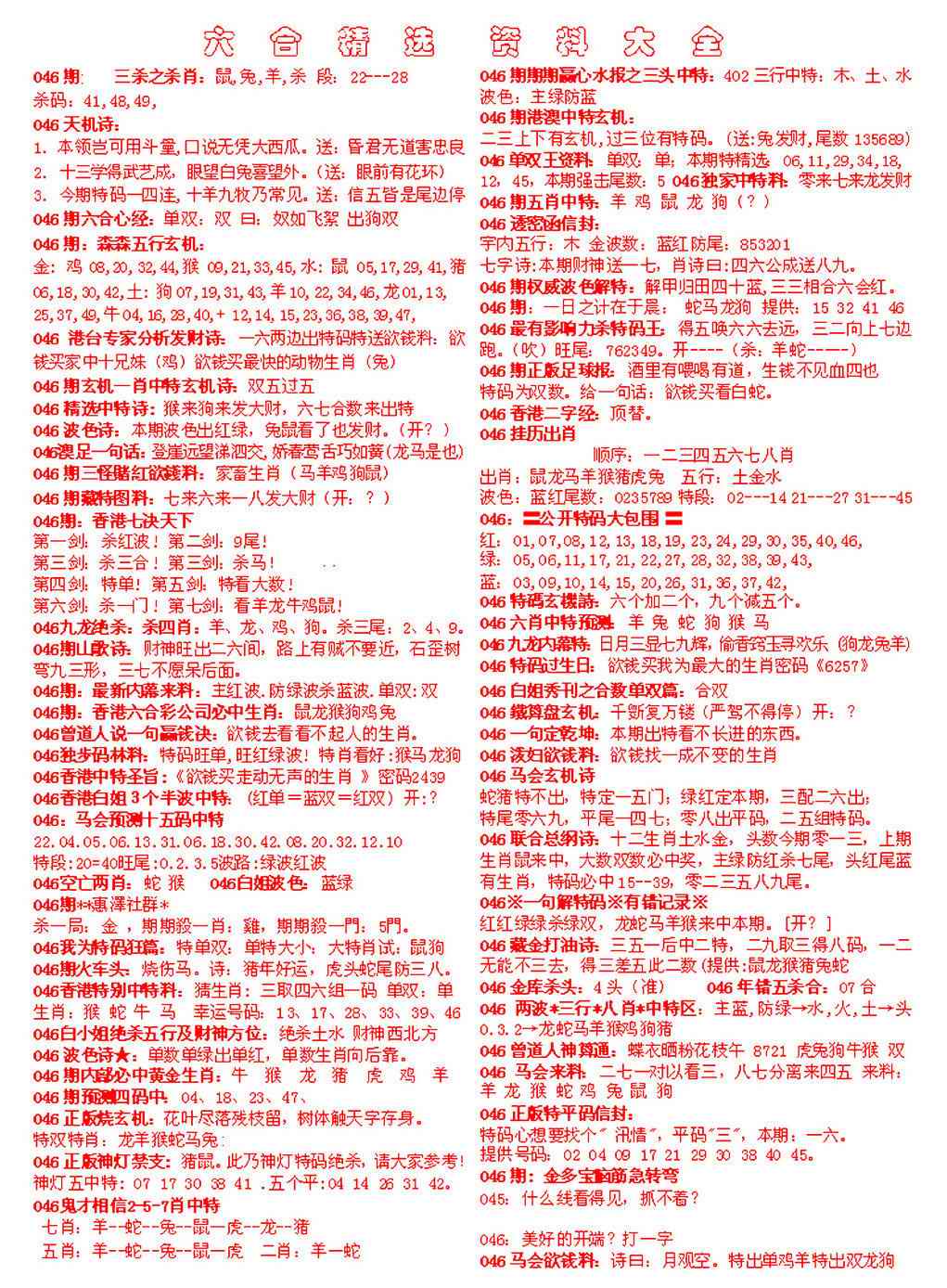 046期六合精选资料大全[图]