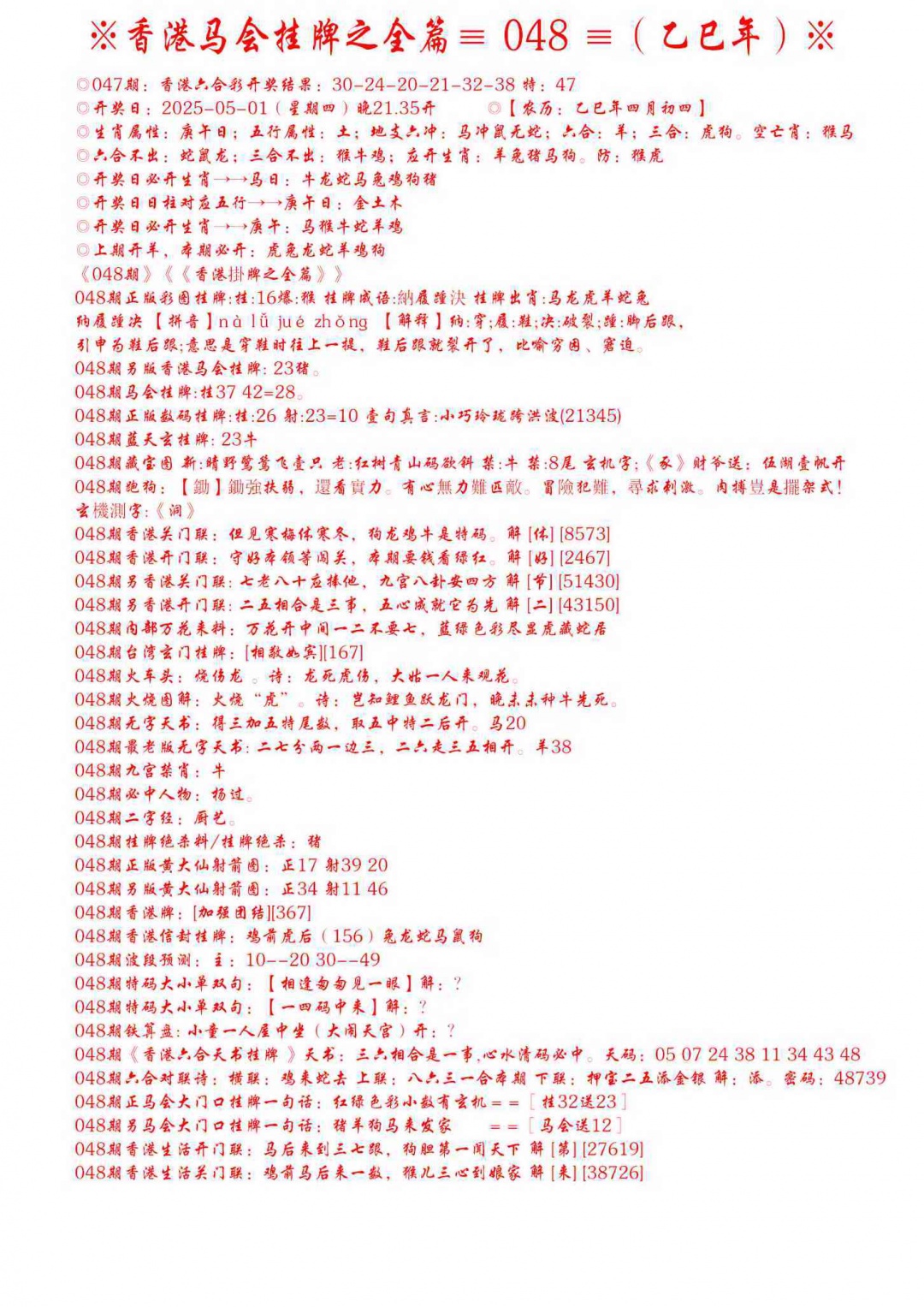048期手写马会挂牌[图]