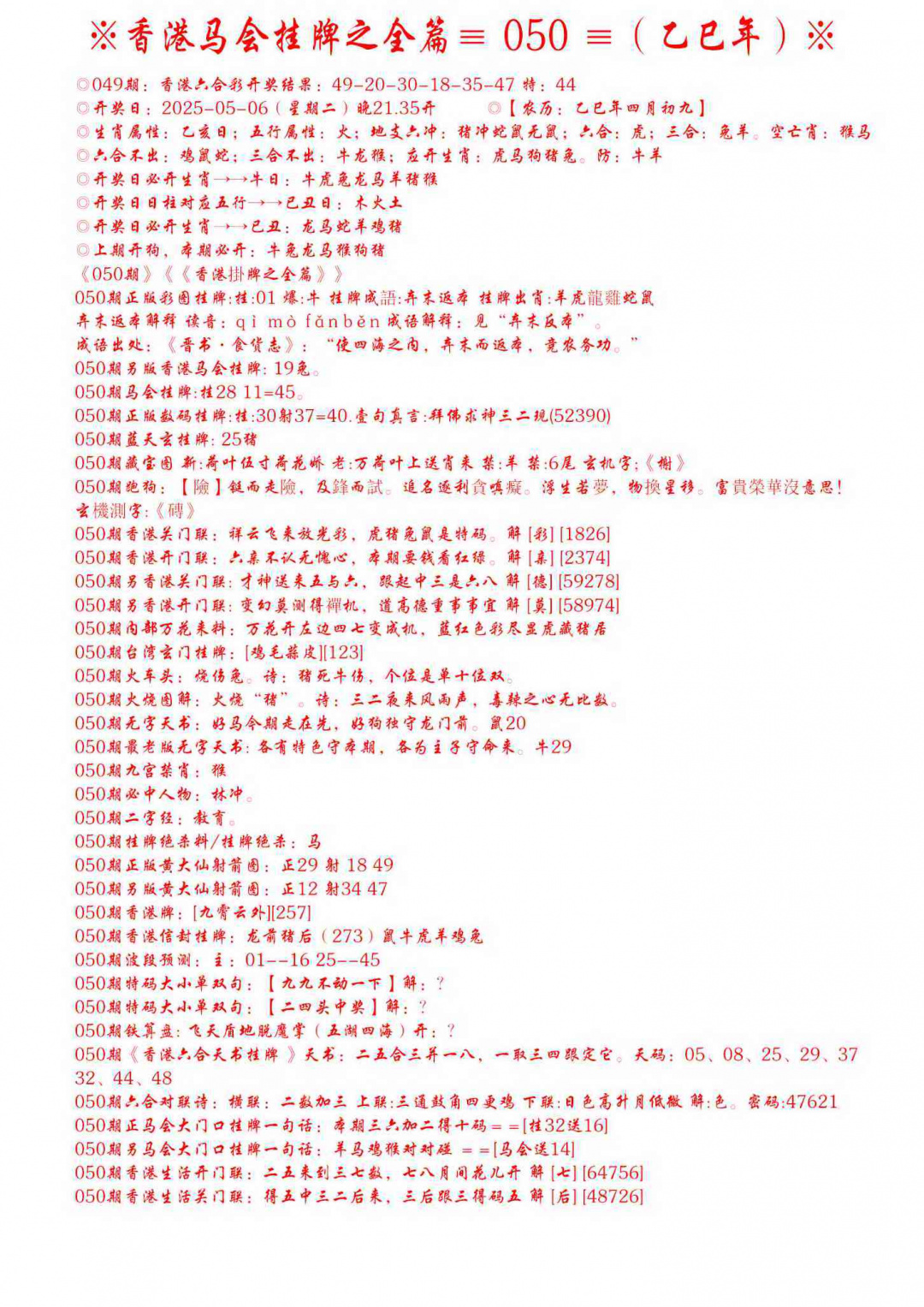 050期手写马会挂牌[图]