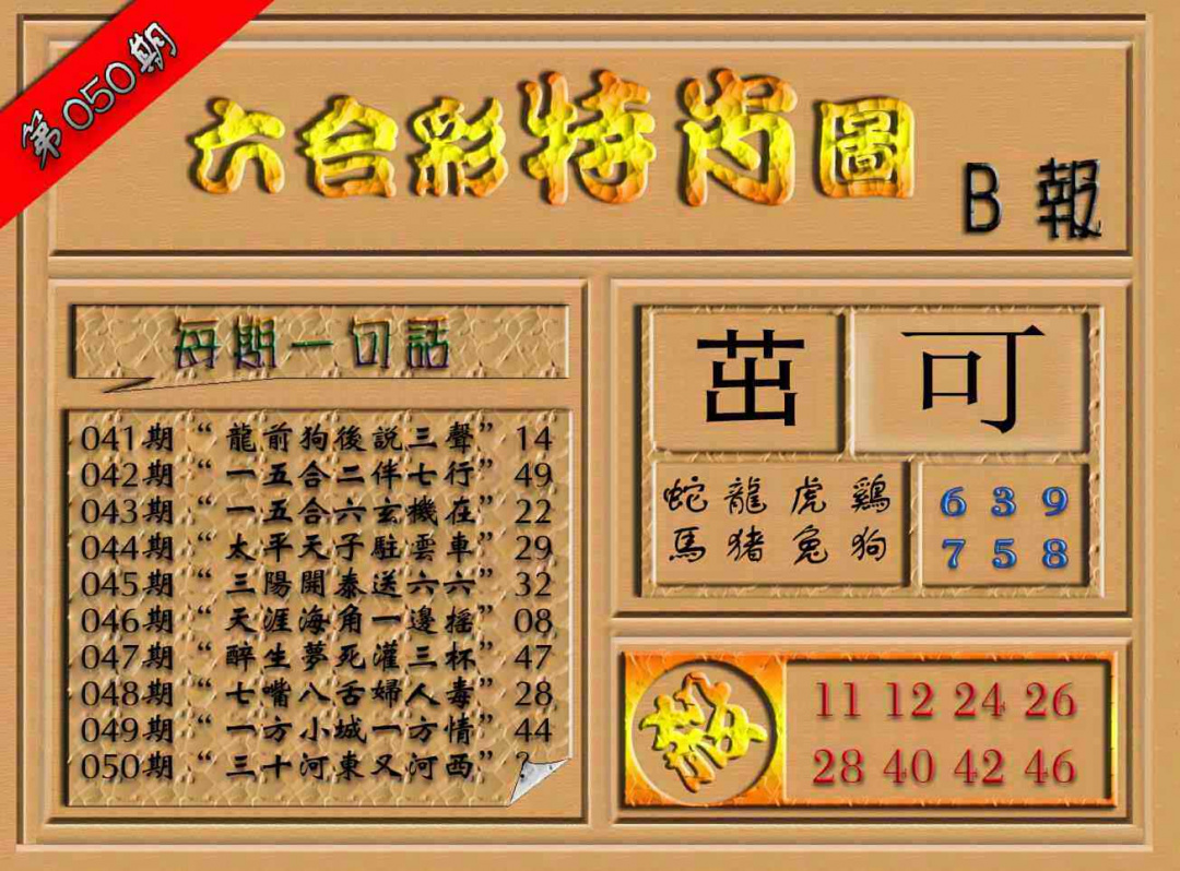 050期六合彩特肖图(B报)[图]