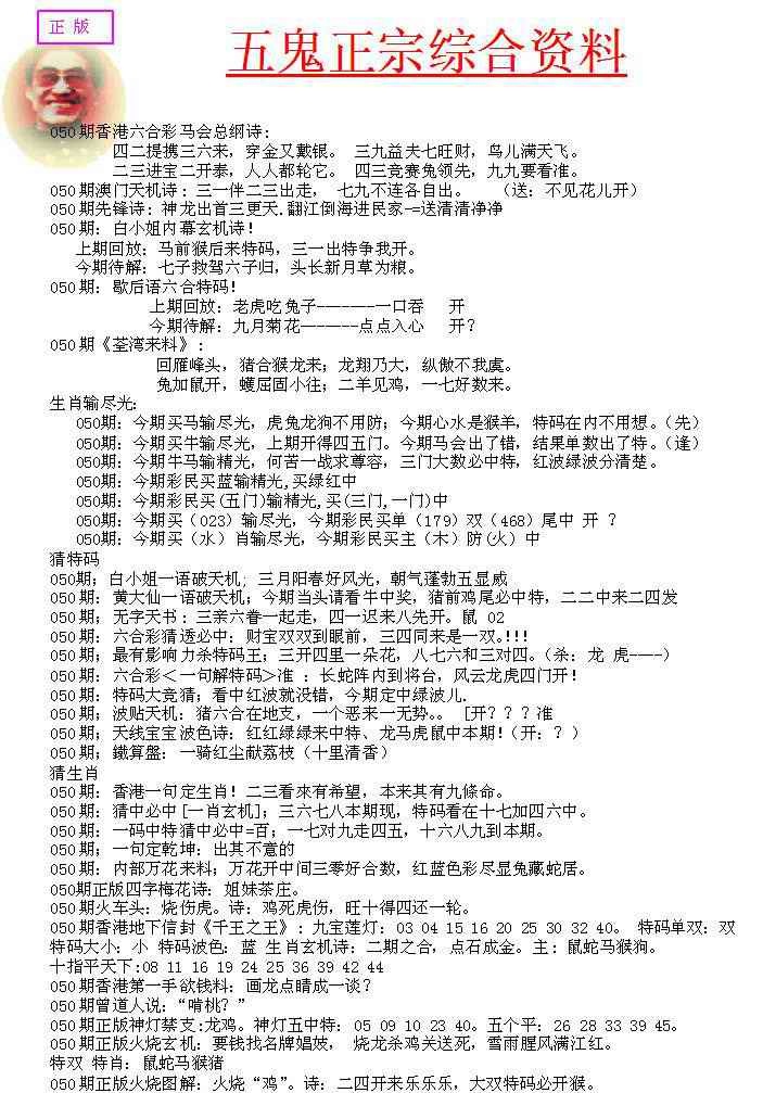 050期五鬼正宗会员综合资料A[图]