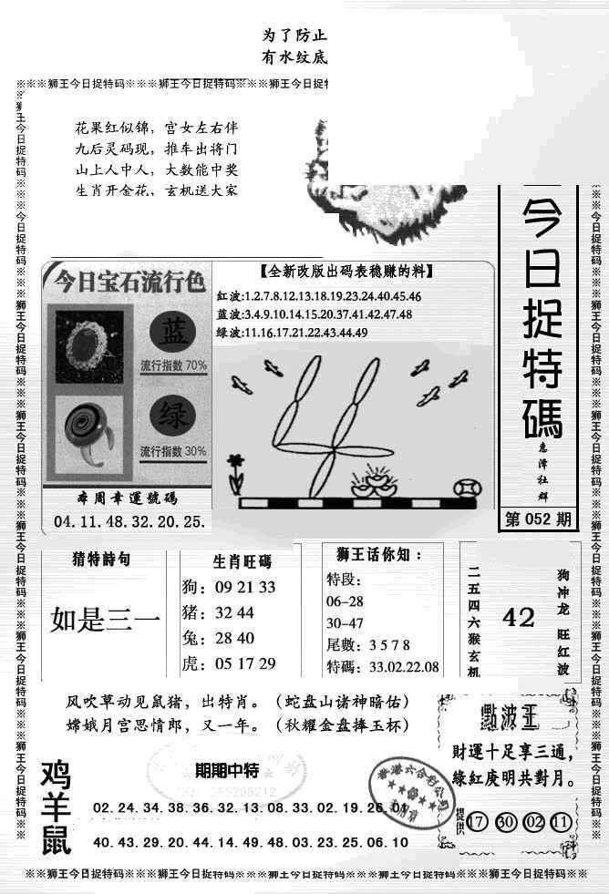 052期狮王今日抓特码[图]