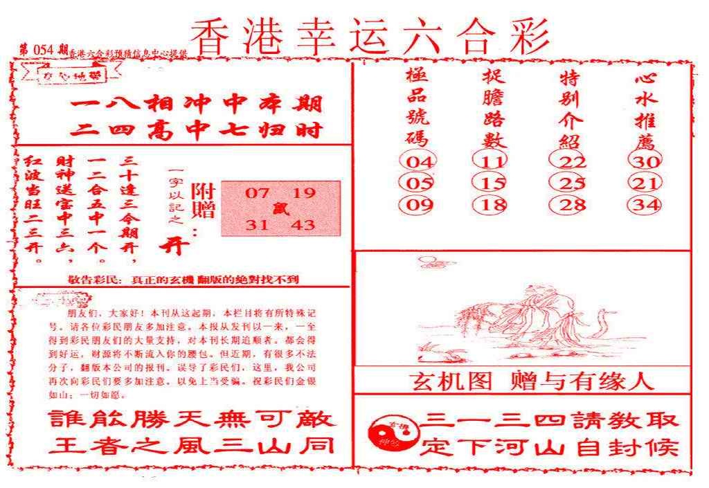 054期幸运六合彩(信封)[图]