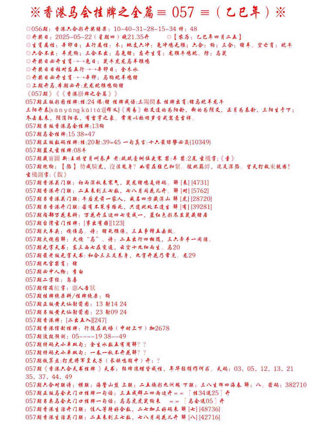 057期手写马会挂牌[图]