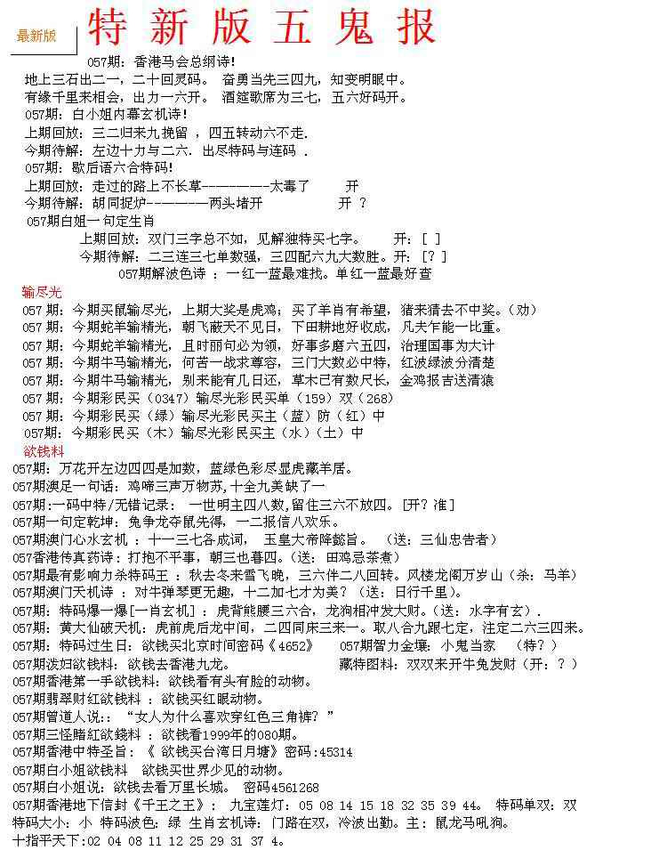 上一篇:057期特新五鬼B[图]