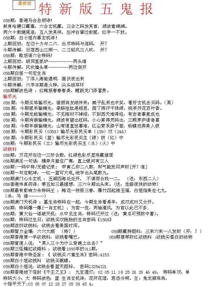 上一篇:058期特新五鬼B[图]