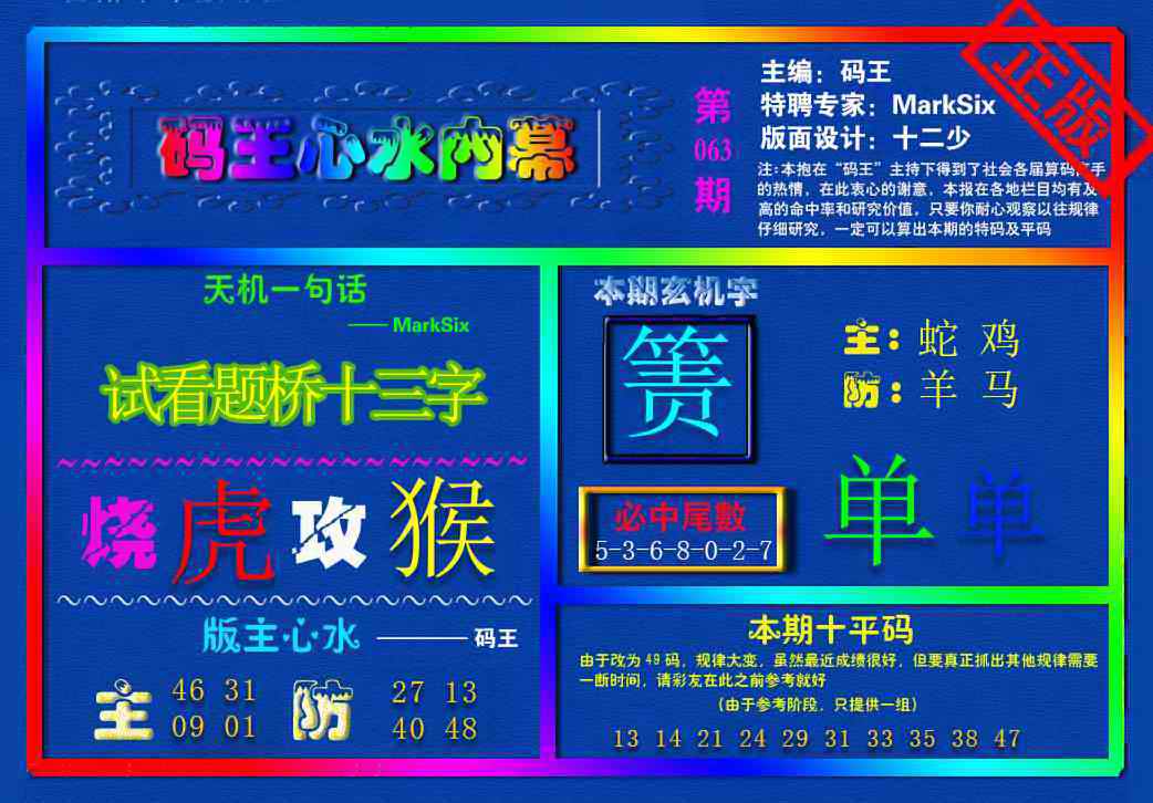 063期{码王雷锋}内幕报[图]