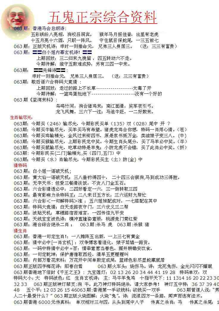 063期五鬼正宗会员综合资料A[图]