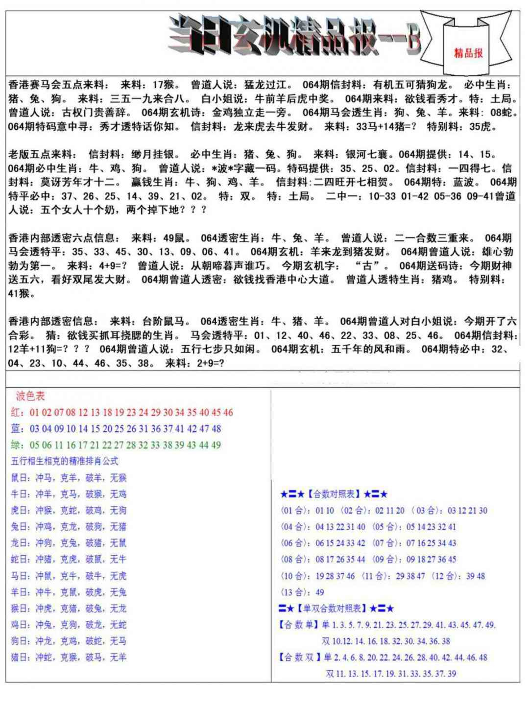 064期当日玄机精品报B[图]