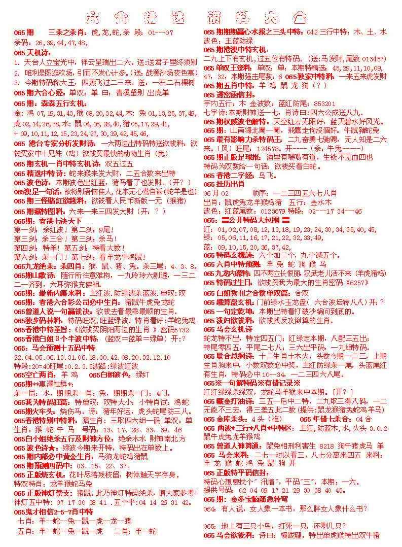 065期六合精选资料大全[图]