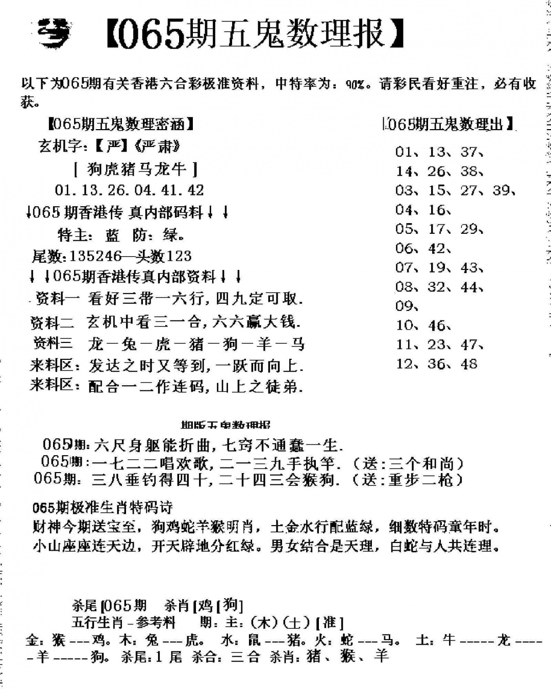 065期五鬼数理报[图]